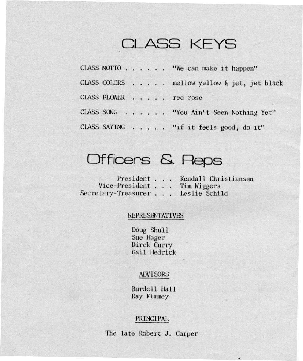 Page 1 Welcome Page 2 Class Keys AND Officers Page 3 Class Stats Page 4 Ackerman - Bangasser Page 5 Batson - Binkele Page 6 Brunner - Carroll Page 7 Carter - Davis Page 8 Domnick - Fischer Page 9 Forsyth - Gardner Page 10 Getz - Grisham Page 11 Hager - Hayse Page 12 Hedrick - Huffman Page 13 Jacobson - Kahler Page 14 Kaiser - Kemper |