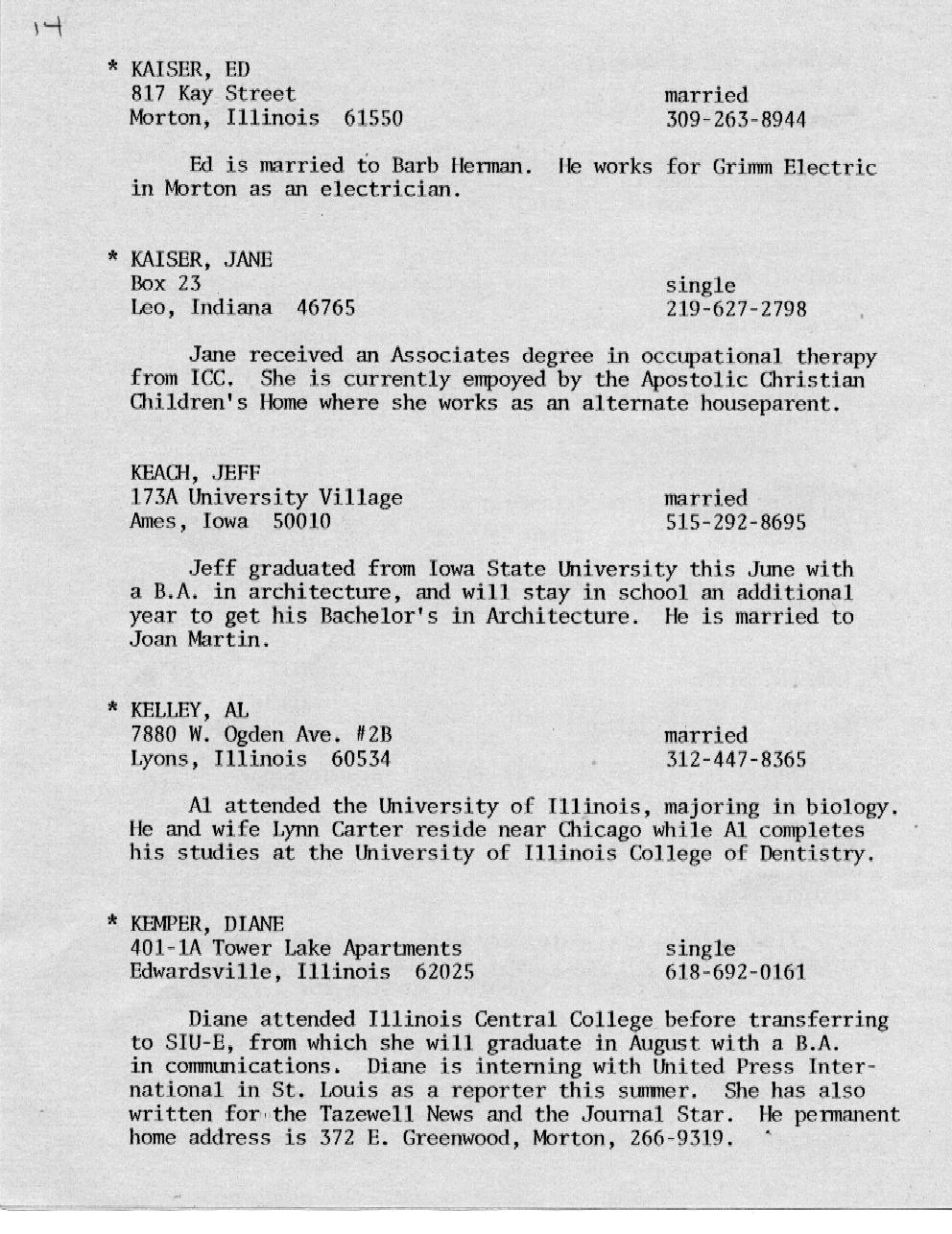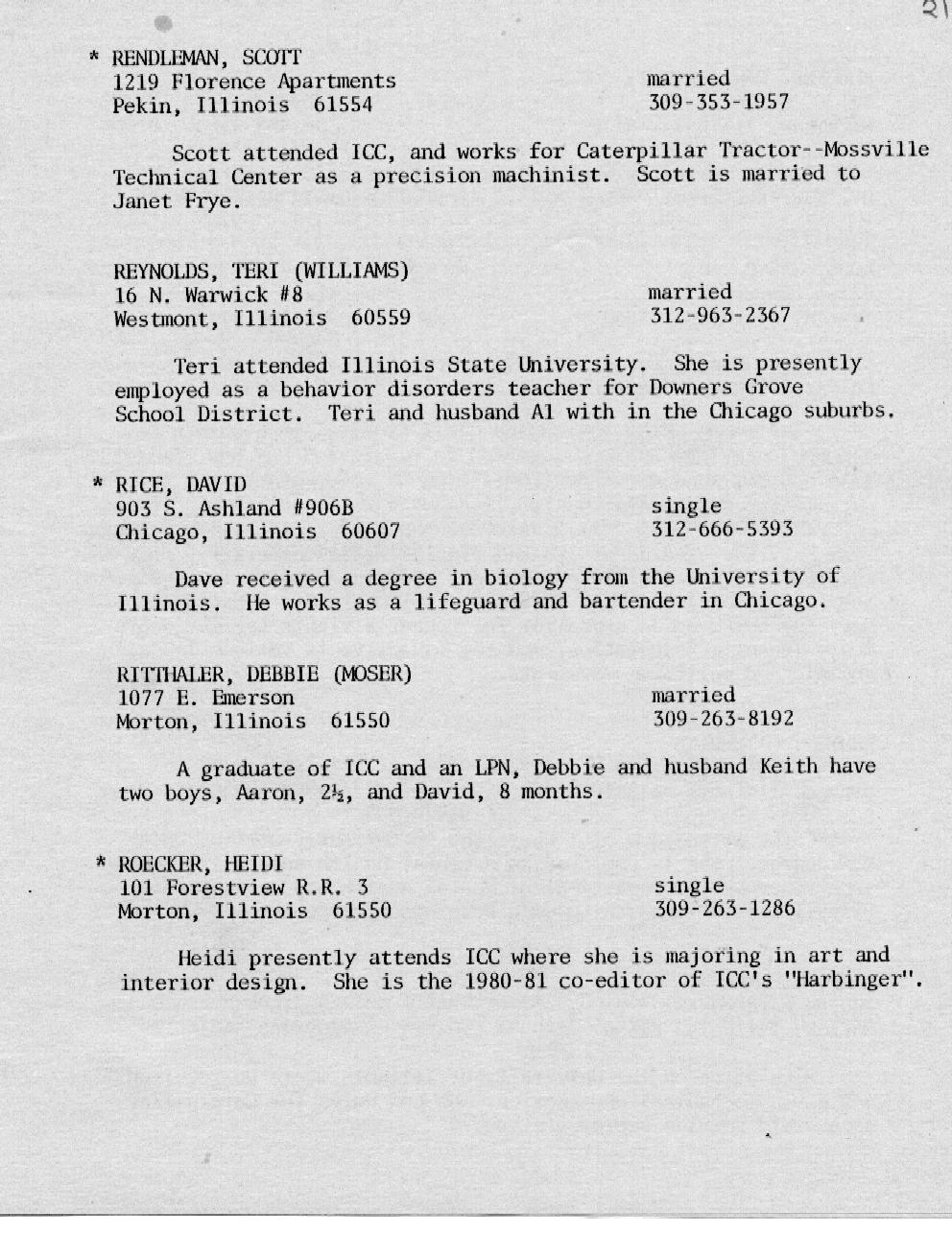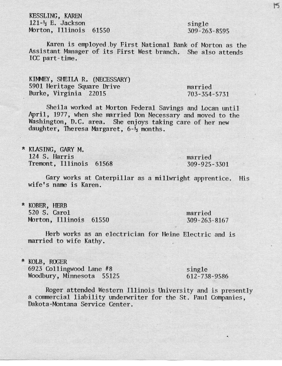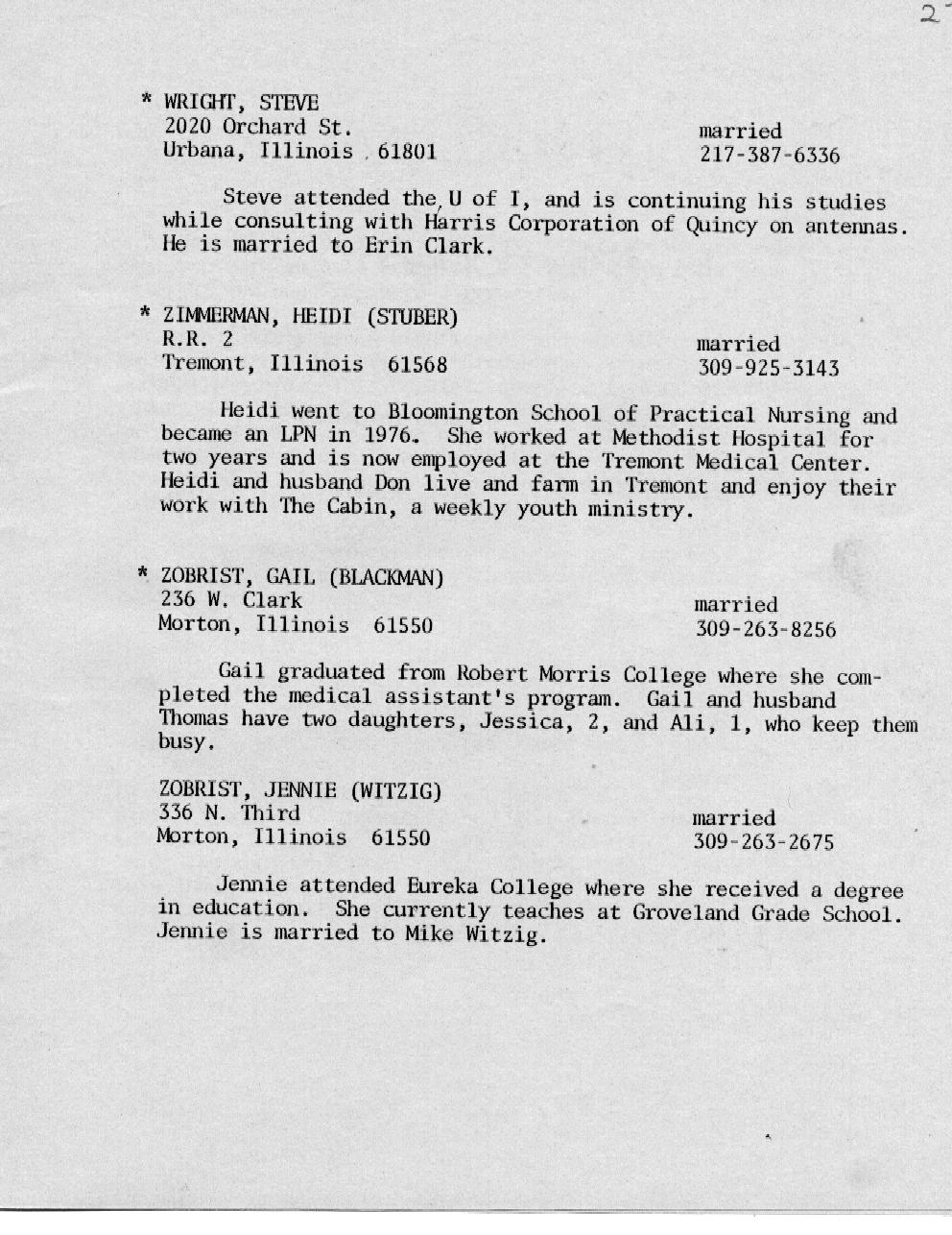 Kessling - Kolb Page 16 Kraft - McMullen Page 17 Miller - Nelson Page 18 Nelson - Olson Page 19 Ort - Perkins Page 20 Petonke - Regnier Page 21 Rendelman - Roecker Page 22 Roecker - Samp Page 23 Schild - Shull Page 24 Sipka - Stephens Page 25 Stoetzel - Theil Page 26 Thomson - Williams Page 27 Wright - Zobrist Page 28 In Memoriam |
