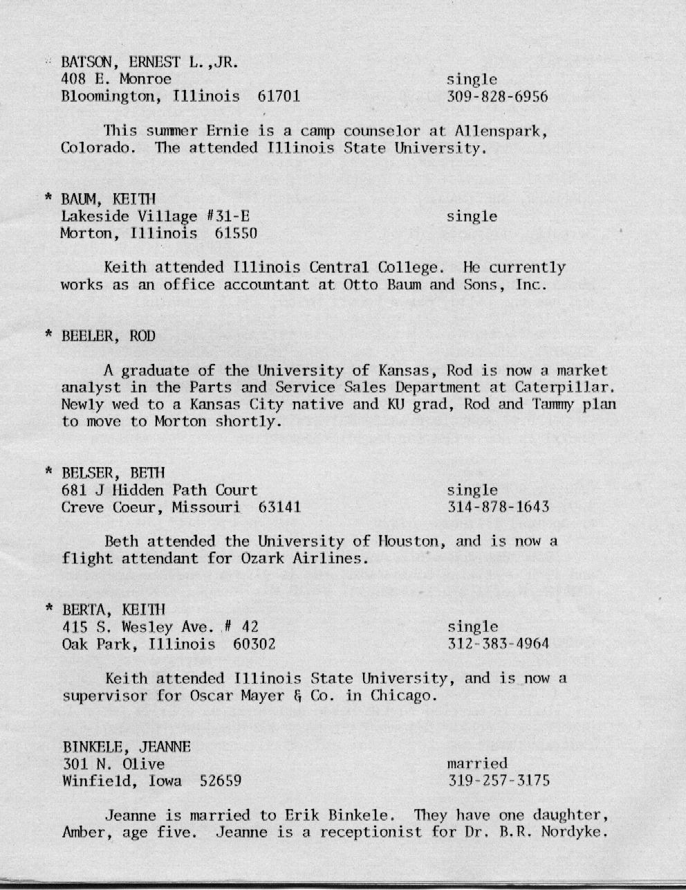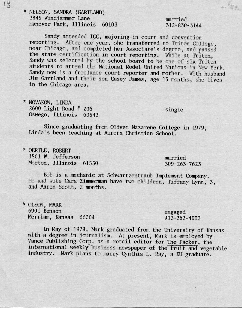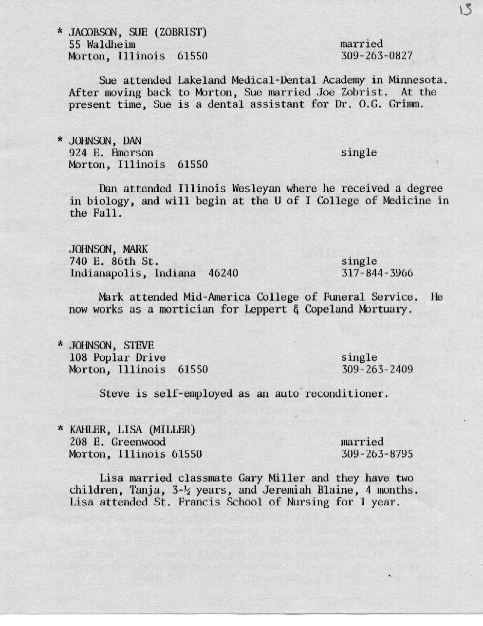 Kessling - Kolb Page 16 Kraft - McMullen Page 17 Miller - Nelson Page 18 Nelson - Olson Page 19 Ort - Perkins Page 20 Petonke - Regnier Page 21 Rendelman - Roecker Page 22 Roecker - Samp Page 23 Schild - Shull Page 24 Sipka - Stephens Page 25 Stoetzel - Theil Page 26 Thomson - Williams Page 27 Wright - Zobrist Page 28 In Memoriam |