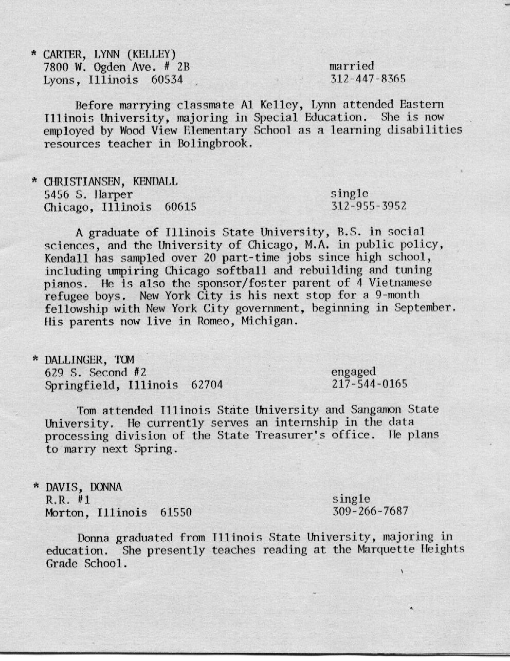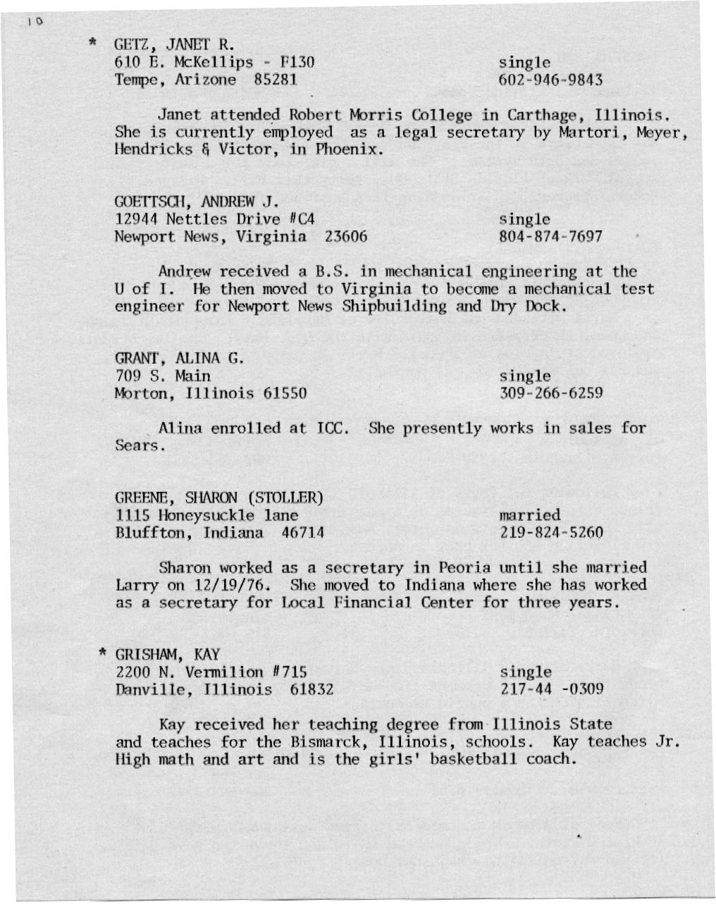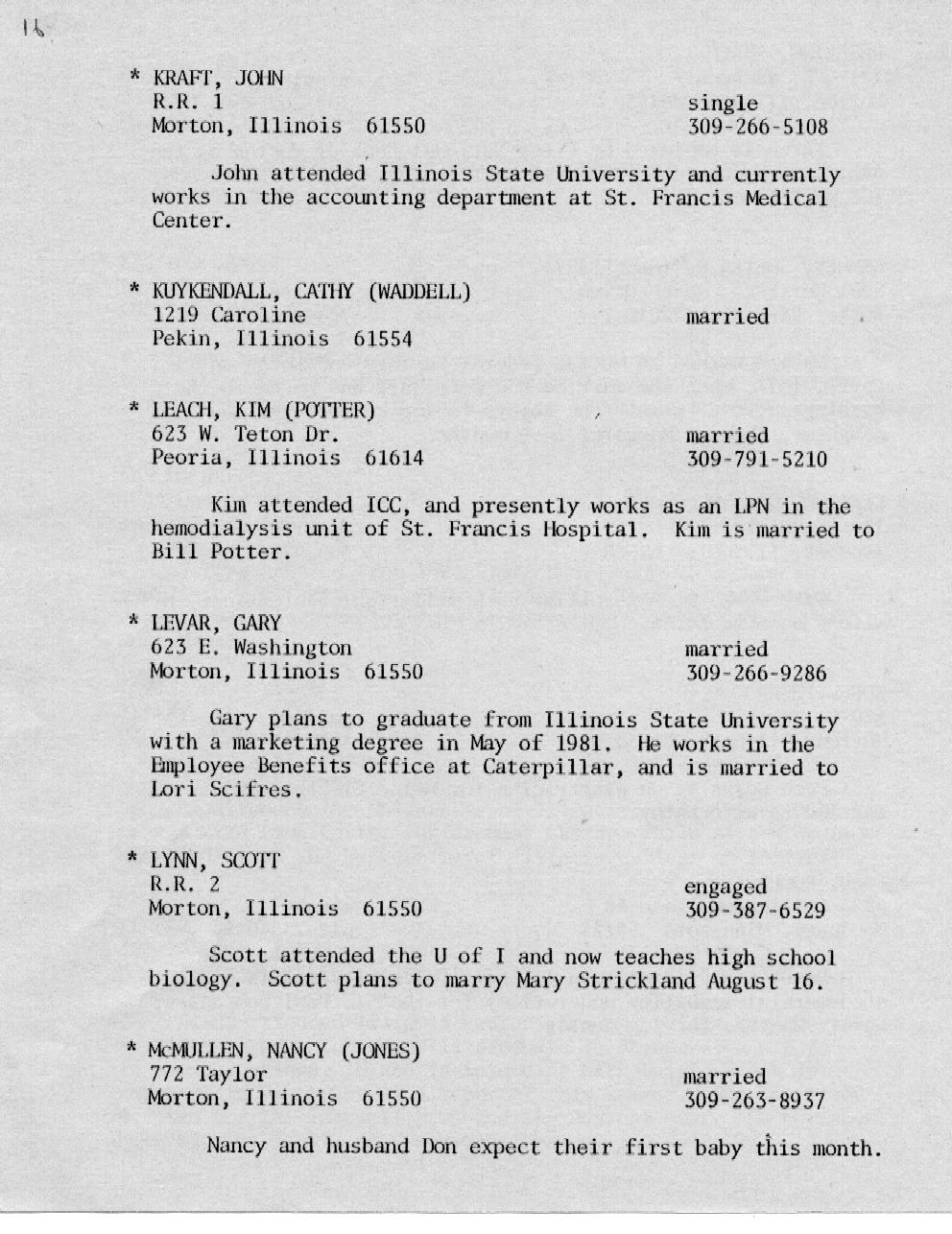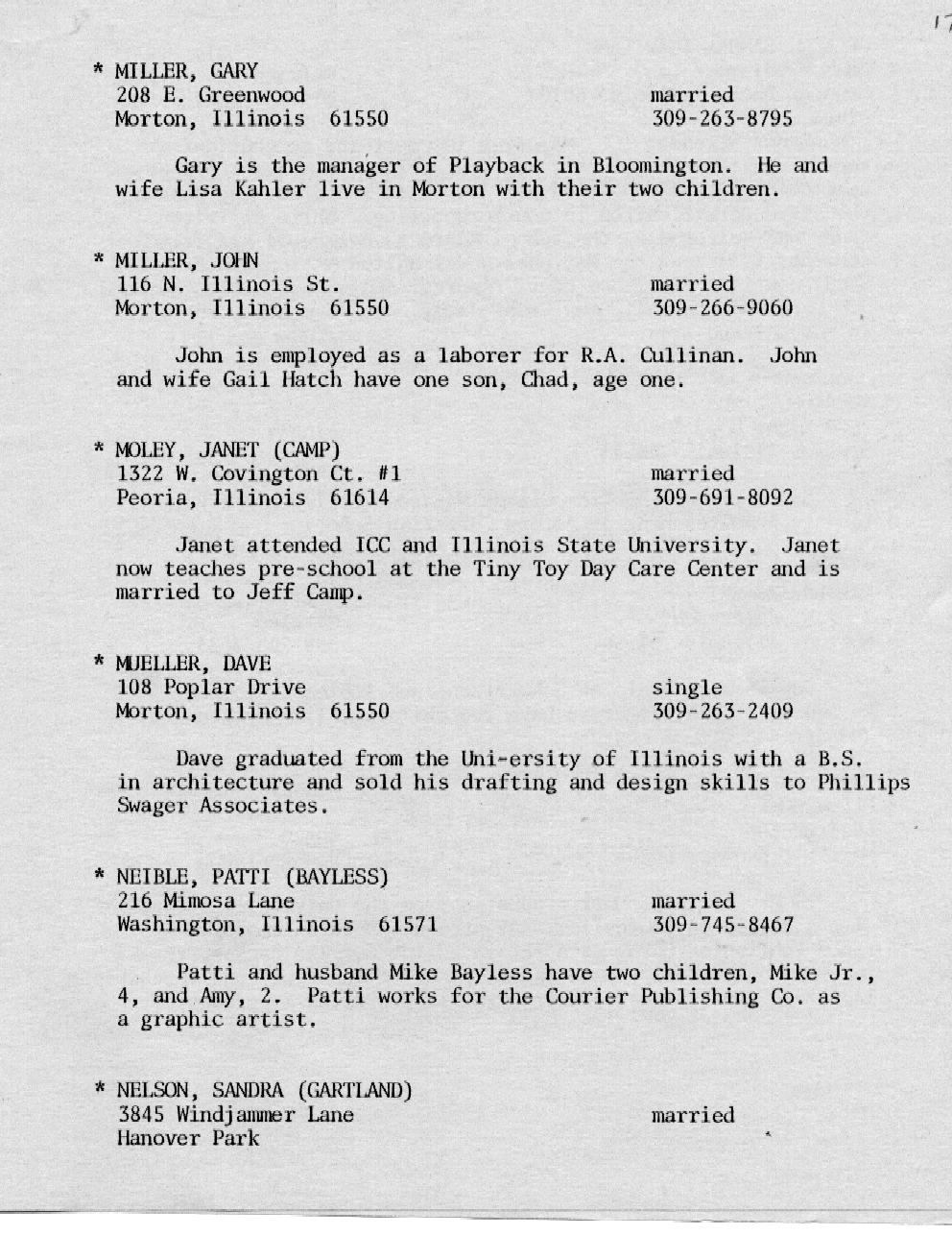 Kessling - Kolb Page 16 Kraft - McMullen Page 17 Miller - Nelson Page 18 Nelson - Olson Page 19 Ort - Perkins Page 20 Petonke - Regnier Page 21 Rendelman - Roecker Page 22 Roecker - Samp Page 23 Schild - Shull Page 24 Sipka - Stephens Page 25 Stoetzel - Theil Page 26 Thomson - Williams Page 27 Wright - Zobrist Page 28 In Memoriam |